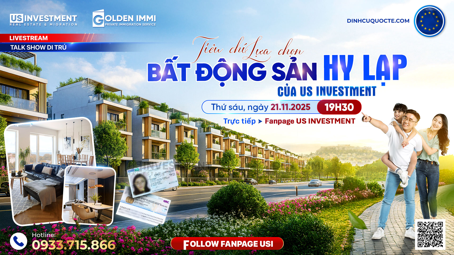 Quý Anh Chị quan tâm có thể bấm Follow Fanpage Us Investment - Đầu Tư Định Cư Quốc Tế để nhận thông tin khi buổi Livestream Talkshow Di trú với chủ đề: “TIÊU CHÍ LỰA CHỌN BẤT ĐỘNG SẢN HY LẠP CỦA US INVESTMENT” được bắt đầu.