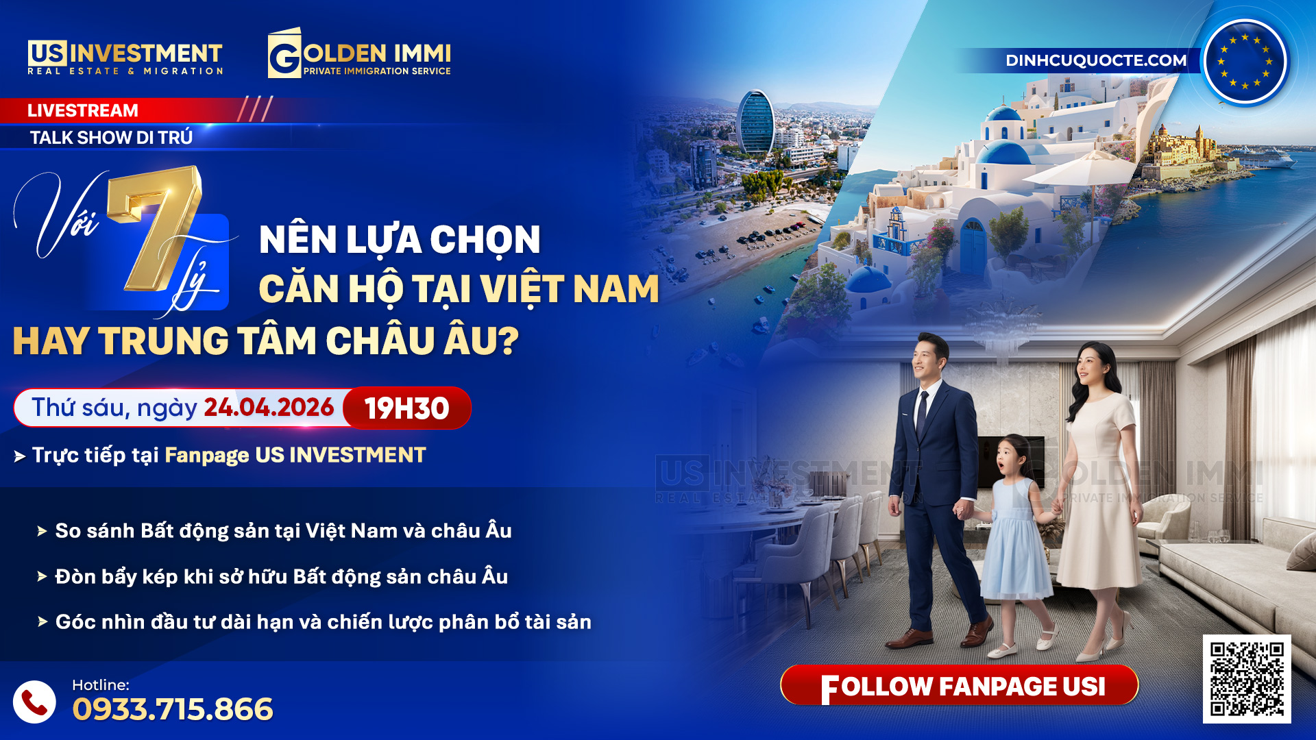 ⏰ 19h30 Thứ 6 Ngày 24/04/2026 Trực tiếp trên Fanpage: Us Investment - Đầu Tư Định Cư Quốc Tế